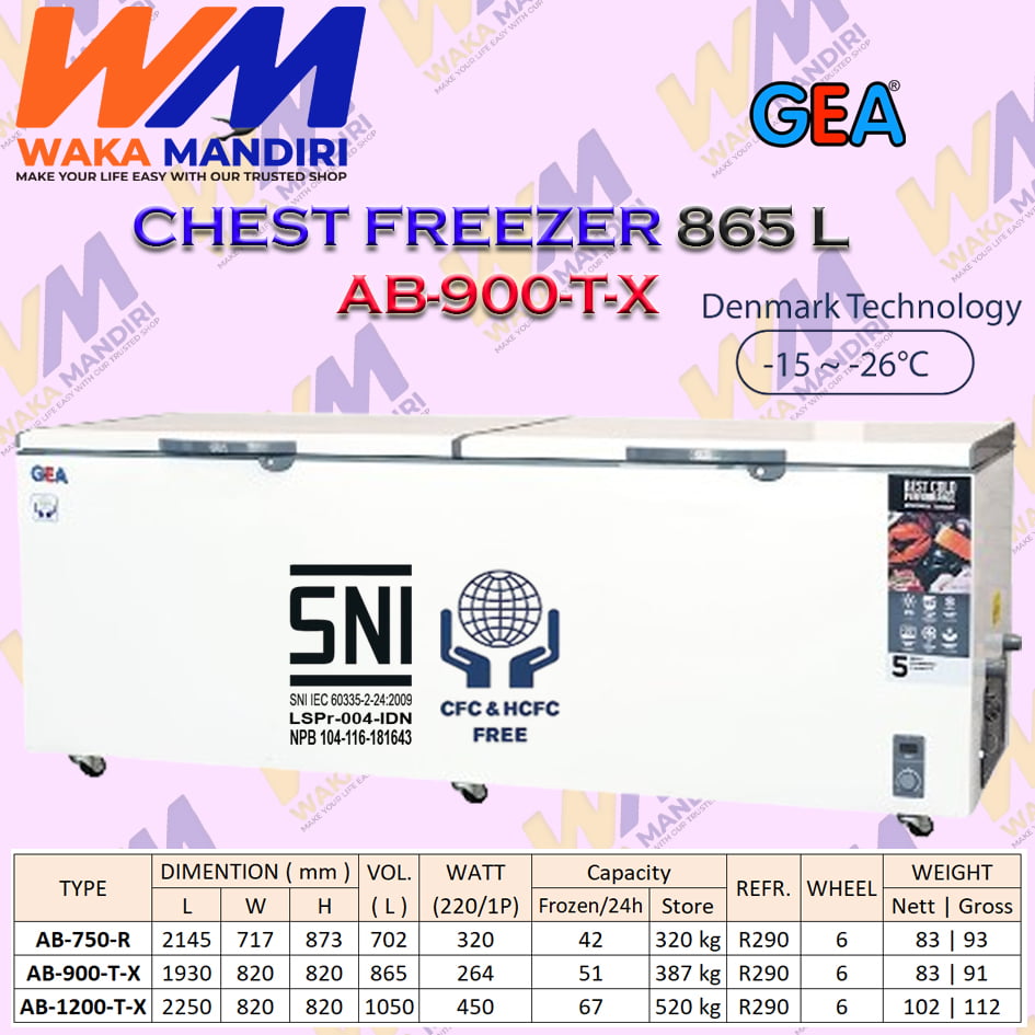 GEA Chest Freezer [865 L] AB-900-T-X merupakan freezer yang dapat menyimpan makanan beku seperti es krim, nugget, bakso dan produk-produk beku lainnya. Freezer ini memiliki LED Light yang akan membantu dalam penerangan saat Anda mencari bahan makanan. Kulkas ini memiliki sistem pendingin freezer sangat cepat dan telah bebas dari CFC, sehingga lebih ramah lingkungan. Freezer ini lebih hemat energi, karena menggunakan konsumsi listrik yang lebih sedikit. Freezer ini juga memiliki roda untuk memudahkan Anda saat melakukan pemindahan. Freezer dari GEA ini sangat cocok Anda jadikan pilihan untuk kebutuhan di tempat usaha Anda.