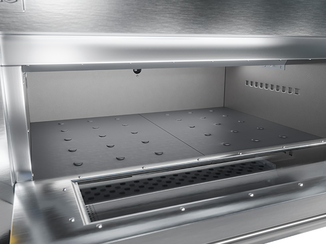 Oven ini memiliki ruang pembakaran besar dengan kapasitas 4 tray, memungkinkan produksi lebih banyak dalam satu siklus pemanggangan.
