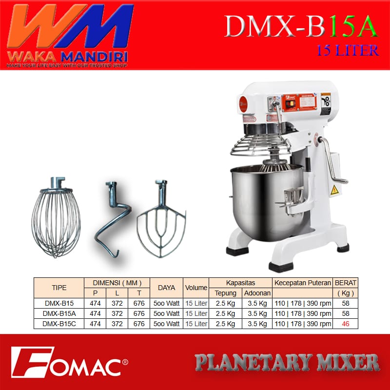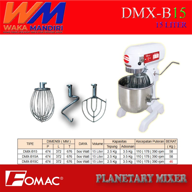 DMX-B15C adalah mesin planetary mixer. Dengan mesin pengaduk adonan DMX-B15C ini anda akan merasa puas karena mesin ini dapat meningkatkan produktivitas anda dalam membuat berbagai adonan dan meningkatkan kualitas adonan sehingga makanan yang dihasilkan menjadi lebih berkualitas. Mesin ini terbuat dari besi anti karat, dan wadah dari mesin ini terbuat dari stainless steel. mesin ini mempunyai beberapa bentuk pengaduk, dan dapat mengaduk dengan cepat. Jadi tidak perlu khawatir mesin ini dapat bekerja dengan cepat dan tidak perlu dipertanyakan ke higienisan nya. Keuntungan menggunakan mesin pengaduk adonan ini yaitu :