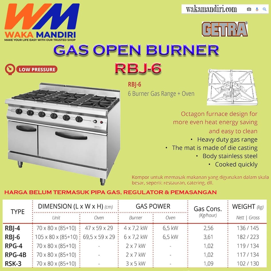 RBJ-6 Getra Gas Open Burner 6 Tungku + Oven