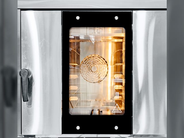 Berbeda dengan oven konvensional, sistem kipas konveksi pada COV-GXR5 menyirkulasikan udara panas secara kontinu ke seluruh ruang oven. Hasilnya, waktu memanggang lebih singkat, suhu lebih stabil, dan konsumsi energi menjadi lebih efisien—sangat ideal untuk dapur komersial dengan ritme kerja tinggi.