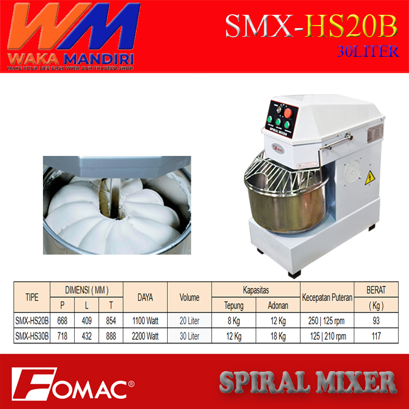 📌 Spesifikasi Spiral Mixer SMX-HS20B “FOMAC”